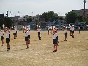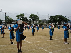 パーランクーの音が運動場に響いていました。音も動きもそろうようになり、高学年の力強さ、かっこよさが見られるレベルまで上がってきました。今週は晴れる日が少ないようで最終の動きを確認していました。