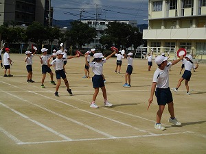 体育大会に向けていよいよ運動場で本格始動です。力強く表現できるようになってきています。あと2週間完成が楽しみです。
