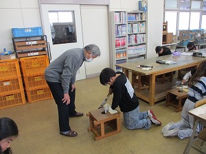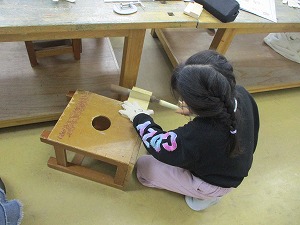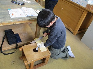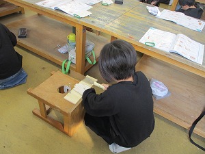 はじめてののごぎりを使った学習が始まりました。学校運営協議会から募集させていただいたスクールサポートの方3名のご協力もあり、安全に授業を進めることができました。最初は肩に力が入っていまい、刃もしなり、まっすぐ切ることができませんでしたが、授業が終わる頃には、きれいに切れるようになっていました。ご協力いただきありがとうございました。