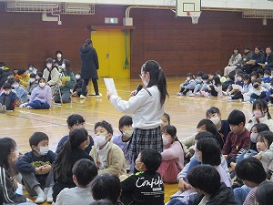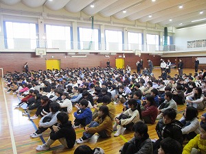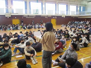 3学期の仲間づくり集会がありました。児童会代表から「6年生にとって最後の、学年にとっても最後の仲間づくり集会です。ぼくたちは仲間について話し合うことができたので仲間づくりがあってよかったと思います。仲間づくり集会で学んだことを中学校でもいかしていきたいと思います。」