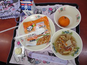 今日は防災メニューでした。なるべく火を使わずに災害の時に提供されるメニューです。1年生は初めての防災メニューでしたが、上手に食べることができていました。