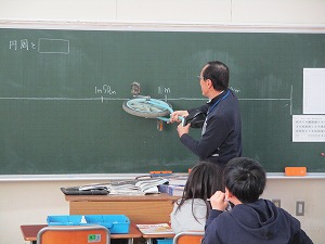 円周の長さについて学びました。一輪車やフラフープの長さを予想し直径との関係を調べました。予想した長さよりも長く、円周は直径の3倍よりも少し長いことがわかりました。教科書についている円周キットで円の長さについて調べ、興味を持つことができました。