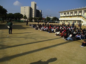 訓練は5分以内で全校生が集まり、静かに話を聞くことができました。教職員も班にわかれて児童がいないか確認しました。