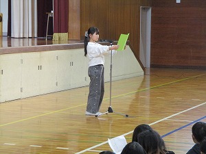 各学年の代表が作文を読みました。作文の後に、感想を交流しました。