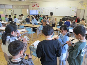 「メリーさんのひつじ」をリコーダーで挑戦しました。グループで旋律の重なりを感じとりながら演奏することができました。