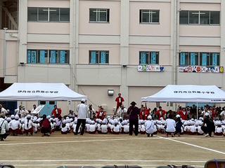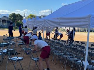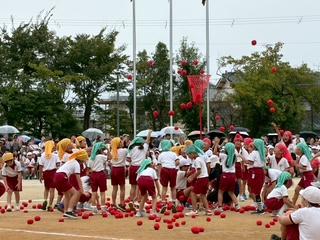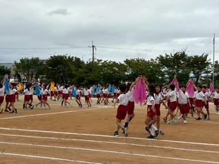 明日の晴天を願いながら、5,6年生が運動会の準備を進めてくれました。