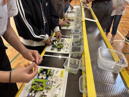 レゴブロックの車を協力して組み立てていく活動では、必要な部品を、必要なときに、必要な分だけ生産・調達する「ジャスト・イン・タイム」やチームワークの大切さについて学びました。