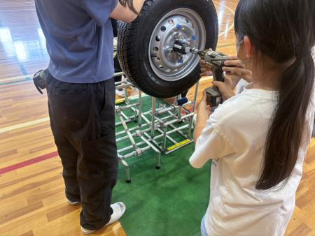 ダイハツの方がものづくり体験教室を開いてくださり、社会科で学習している自動車づくりについて、作業を体験しながら学ぶことができました。