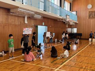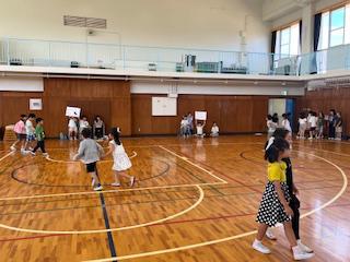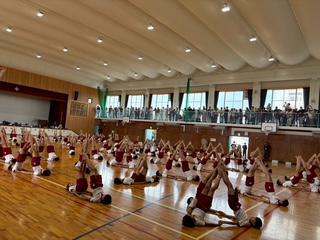 雨がひどくなったため、5年&6年の表現は体育館で行いました。