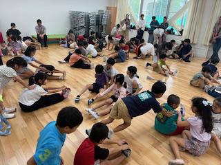 せまい屋内で限られたスペースでしたが、高校生の皆さんが安全にも気を配りながらとても上手に工夫してくださり、みんなで体を動かしました。