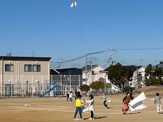 そんな寒空の下、1年生が手作りの凧をあげていました。