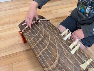 4年生が町の先生にお越しいただき、お琴の体験をしました。