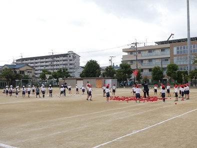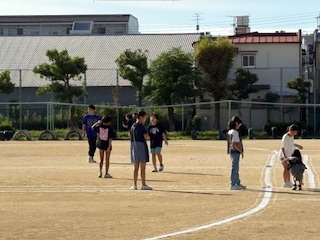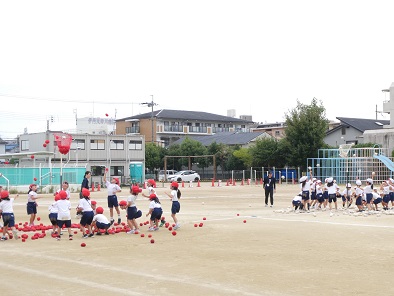 体育大会に向けて、学年ごとの団体競技の練習が始まりました。今日は1年生が運動場で玉入れをしていました。並び方を確認してから、いざ競技スタート!…と思ったら、とても楽しいことが始まります。ぜひ本番を楽しみにしてください。
