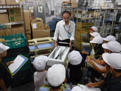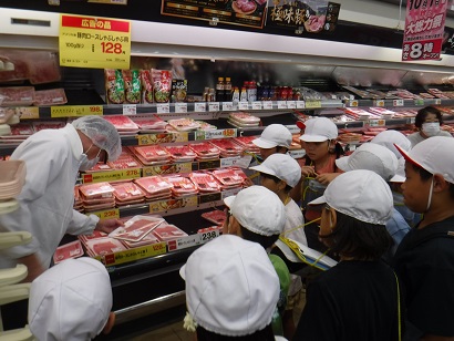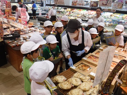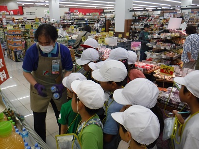 今日は午後に校区内のスーパー「万代荒牧店」に見学に行きました。店長さんをはじめ、店員の皆さんにも質問することができ、とても丁寧に教えていただきました。商品が陳列されているところ、バックヤードにも入らせていただき、貴重な学習となりました。見学したことを、ぜひこれからの学習に活かしてくださいね。