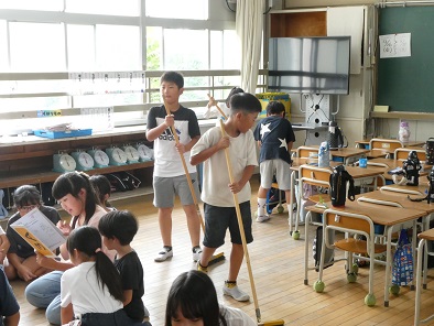 今日の掃除は全学年で作られたグループごとに取り組む「たてわり清掃」で行いました。今年度特に力を入れている「たてわり活動」、6年生の会議などの経験も積み重ねられ、ずいぶん余裕をもって活動できるようになってきました。上の学年も下の学年も、お互い良い刺激になっています。