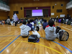 今日は午後から荒牧中学校へ出かけ、オープンジュニアハイスクールに参加しました。いよいよ来年4月に中学生になる6年生、中学校がどんなところなのかを体験する行事です。まずは体育館で全体説明を聞き、各クラスに分かれて中学校の先生による授業を受けました。その後は部活動を見学してまわりました。新しい環境への期待や不安はみんなありますが、少しずつイメージが持てるといいですね。