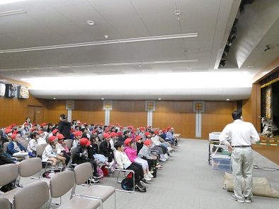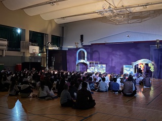 今日は人形劇団「京芸」の皆さんをお招きして、3学年ずつが体育館に集まり人形劇を鑑賞しました。コロナ禍以前は毎年行われていましたが、隔年開催の方針に変更して初めての観劇会となります。劇団の皆さんの迫真の演技に、子どもたちは引き込まれている様子でした。