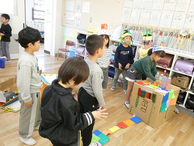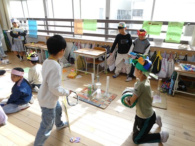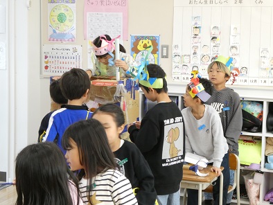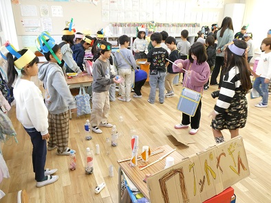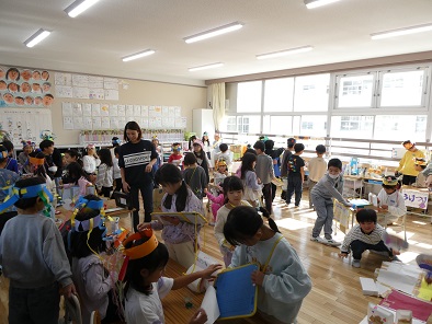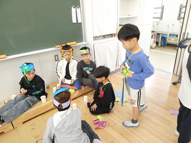 今日は低学年の「おもちゃランド」が開催されました。主催者は2年生の子どもたち、手作りのカラフルな帽子をかぶっておもてなしです。ルールを説明したり、「いらっしゃい!」と声をかけたり、お兄さんお姉さんな姿をたくさん見ることができました。1年生も、来年入学する子どもたちに「こんな風にしてあげたいな」と思ってくれていたらいいですね。