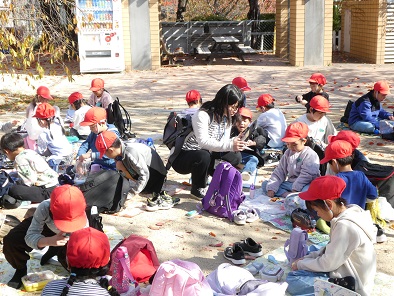 延期になっていた遠足、今日はとてもぽかぽか陽気の中出かけることができました。月曜日ということもあり、王子動物園は団体客も少なくゆっくり動物を観ることができました。職員の方による動物の赤ちゃんについての講習も、とても楽しかったです。お昼は楽しみにしていたお弁当です。朝早くからのご準備ありがとうございました。