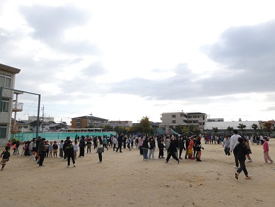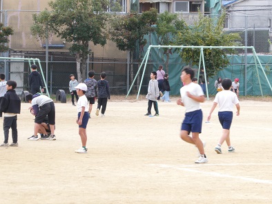 昨日あたりから冬の寒さがやって来ました。今日もとても寒いのですが、なかよしタイムの運動場は子どもたちでいっぱいです。空気が乾燥していますので、水分補給は忘れず行いましょう。