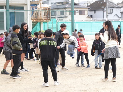 昨日の雨も止み、なかよしタイムに全学年で長縄練習をすることができました。1年生の練習に、6年生のお兄さんお姉さんが縄まわしをかって出てくれていました。「がんばれ!」と笑顔で応援する姿が素敵です。