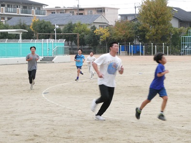 放課後の運動場で、怒濤の走り込み!12月に伊丹市の駅伝大会へ出場する子どもたちが、練習をしていました。先生も一緒に走りながらペースを作り、長距離を走ることに体を慣らしていきます。