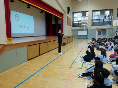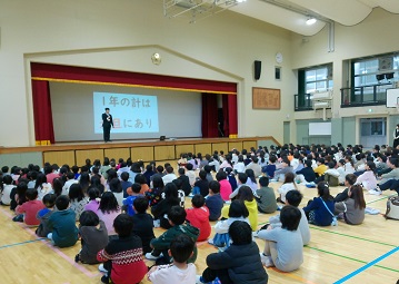 今日は午後から荒牧中学校の先生が来校し、6年生の授業参観の後、出前授業をしてくださいました。もうすぐ中学生になる子どもたち、そろそろ心構えが必要になってくる時期です。「中学校は大人になるための準備をする場」であり、そのために身につけてほしい事について、わかりやすく話をしていただきました。
