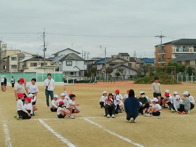 運動場の砂場を使って、4年生が走り幅跳びの練習をしていました。ジャンプするところまで走るスピードを落とさず、タイミング良く跳ぶことが大切です。何度か練習を繰り返すと、だんだんコツをつかめてきます。