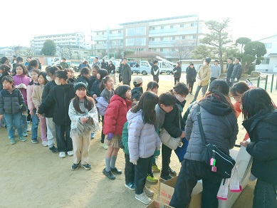 今日は土曜日ですが、PTA執行部や地域の皆さんが中心となって、植木剪定と校内清掃を行いました。創立当時からある植木たちは当時の地域の方々の寄贈で、管理も自分たちで!とずっと引き継がれてきたそうです。朝早くから職人の皆さんが綺麗に剪定をしてくださり、午後はたくさんの子どもたち、保護者や地域の方々、本校の教職員も加わって清掃作業をしました。校内のトイレも綺麗にしていただき本当に助かりました。頑張った皆さんには、できたての美味しい焼きいもが配られました。寒い中でしたが、皆様のおかげで校内がとても綺麗になりました。本当にありがとうございます。
