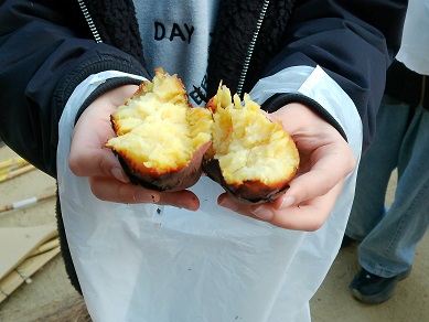 植木剪定、校内清掃、そして焼きいも大会