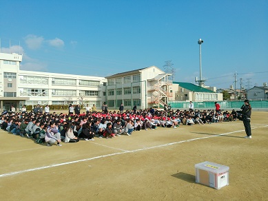 新しい仲間も加わり、576名で3学期が始まりました。校長先生からは、新しい年の最初に目標を立てることの大切さについてお話がありました。生活指導の先生からは、あいさつを「相手の目を見て、いつでも、先に、伝えよう」と話がありました。何か一言「付け足そう」もできると素晴らしいですね。