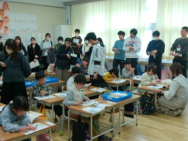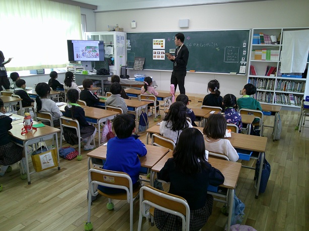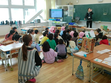今日は今年度の最後の校内研究として、1年1組の授業を公開しました。「ルールを守ること」の大切さを自分事として、「脳内メーカー」のイラストを使いながら自分の考えの変化を書き表していきました。さらに今年度の授業研究の振り返りと来年度への課題などについて、大阪大谷大学・今宮教授にご指導いただきました。今の子どもたちが次年度のおわりにどんな成長をしてほしいのか等、長期にわたる子どもたちの成長を意識する貴重な機会となりました。