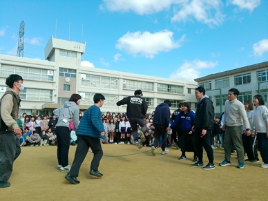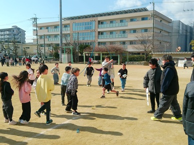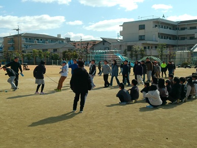 今日は寒さがゆるみ、なかよしタイムの運動場は少し暑いくらいでした。そんな中、最後の長縄大会に向けての練習が行われました。1年間取り組んだ成果、ラストスパートで力が伸びていく時です。ファイト!