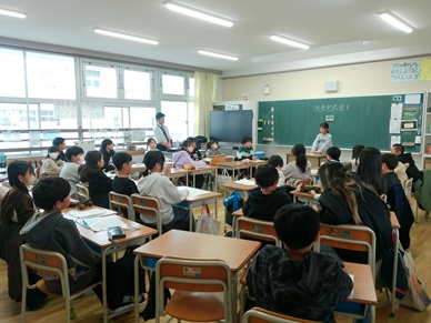 今年度本校が力を注いでいる「たてわり活動」、今日は学校の外に出て、3年生と5年生がたてわり校外活動を行いました。内容は、「グループごとに市バスに乗り、伊丹ミュージアムを見学する」!バスに乗る道中、車いすの方の乗車サポートを間近で見たり、お年寄りの方に席を譲るチャレンジをしたり…と、貴重な体験もたくさんできたそうです。伊丹ミュージアムの皆さんも、「こんな形の社会見学はとてもいいですね!」と来場を歓迎してくださいました。帰ってきたら、今日は特別に学校でお弁当タイム!保護者の皆さんには、朝早くからの準備やバス乗車の際の見守りなど、多くのご協力をいただきありがとうございました。