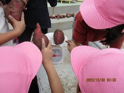 5歳児は、芋の重さを計ってみたいという姿も見られました!