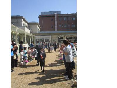 在園時も卒園児を花道でお見送りしました。