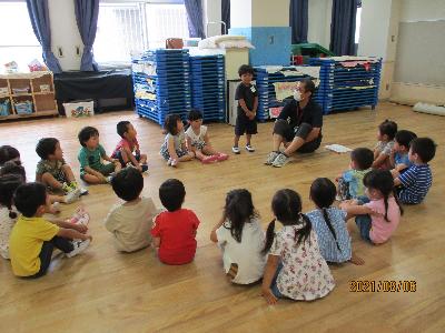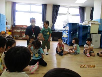 4歳児では絵を見ながら、戦争について簡単に話を聞きました。