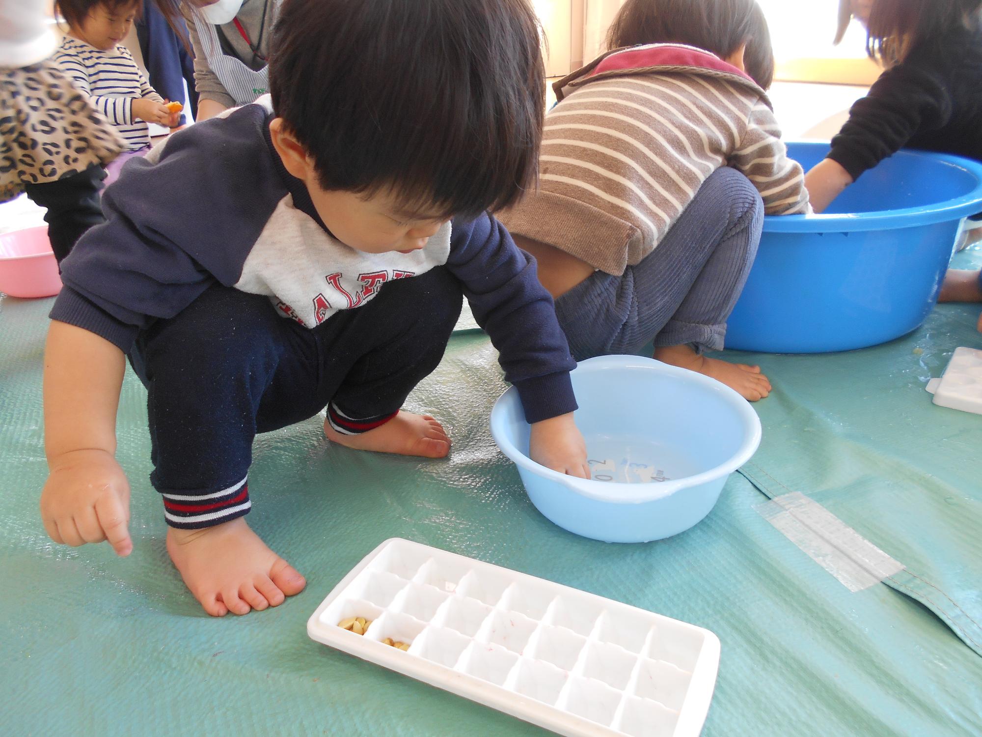 温かくていい香り!(12月) 12月22日の冬至の前後はタライや洗面器にゆずを浮かべてゆず湯をしました。 「いいにおいがする~!」 洗面器にもたくさん浮かべてみようかな! 種がある・・・⁉入れてみよう! 皮を剥いてみよう・・・! 「あたたかくてきもちいい~!」 「からだがあたたまる~。」 冬至の日には、運を呼び込む前の厄払いとして古来より魔除けの色とされていた黄色いゆずを入れたお風呂に入るようになったそうです。園生活の中でも子どもたちに冬至を知ってもらいたいという思いから、「運がつく」と言い伝えられている「ん」のつく食べ物を掲示したり、カボチャまんじゅうを食べたりしました。これから冬本番、みんな元気に過ごせますように。 この記事に関するお問い合わせ先 伊丹市立中央保育所伊丹市行基町1丁目50番072-779-6643