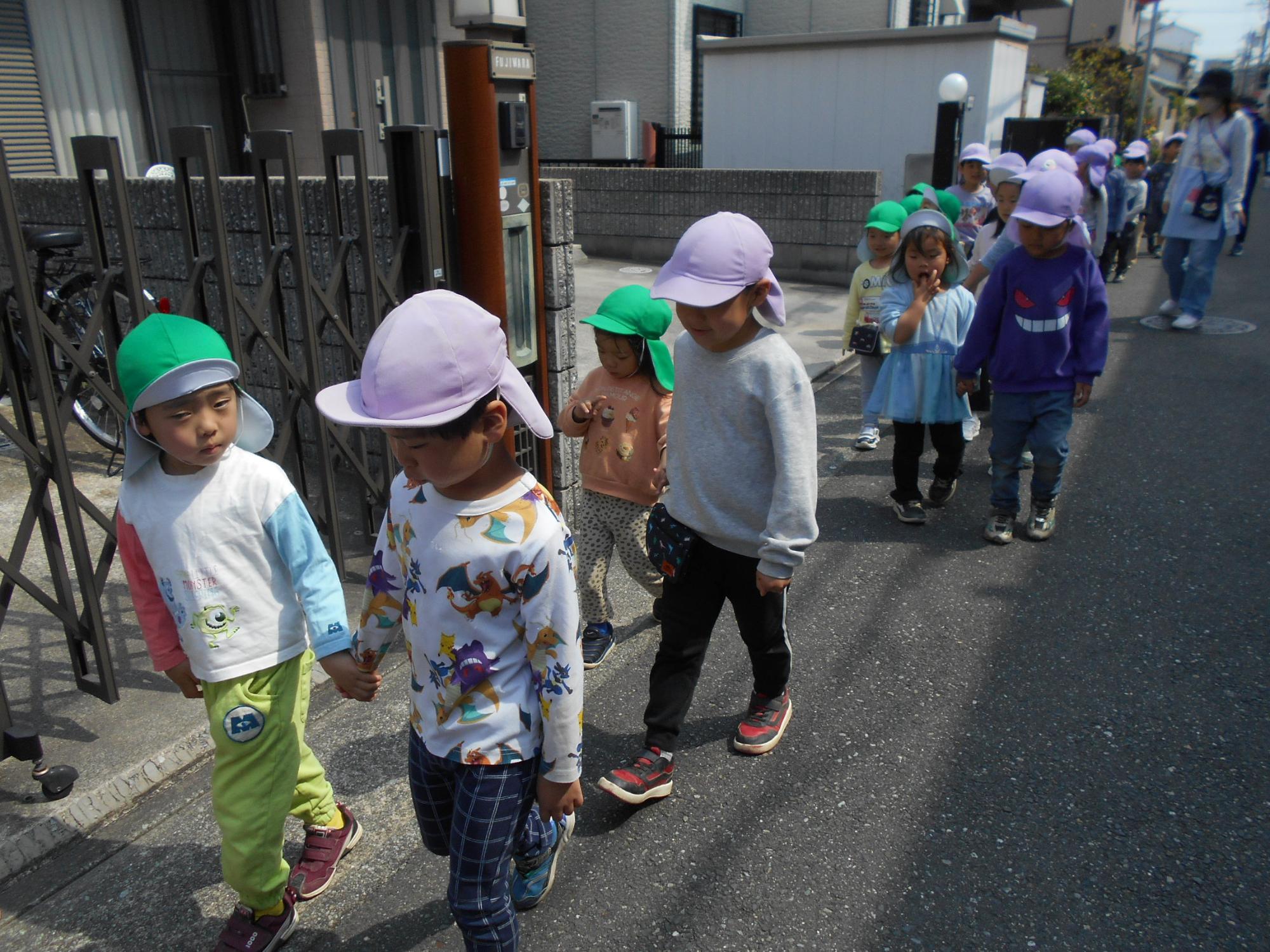 お別れ会の後は、5歳児クラスにとって最後の散歩に行きました。