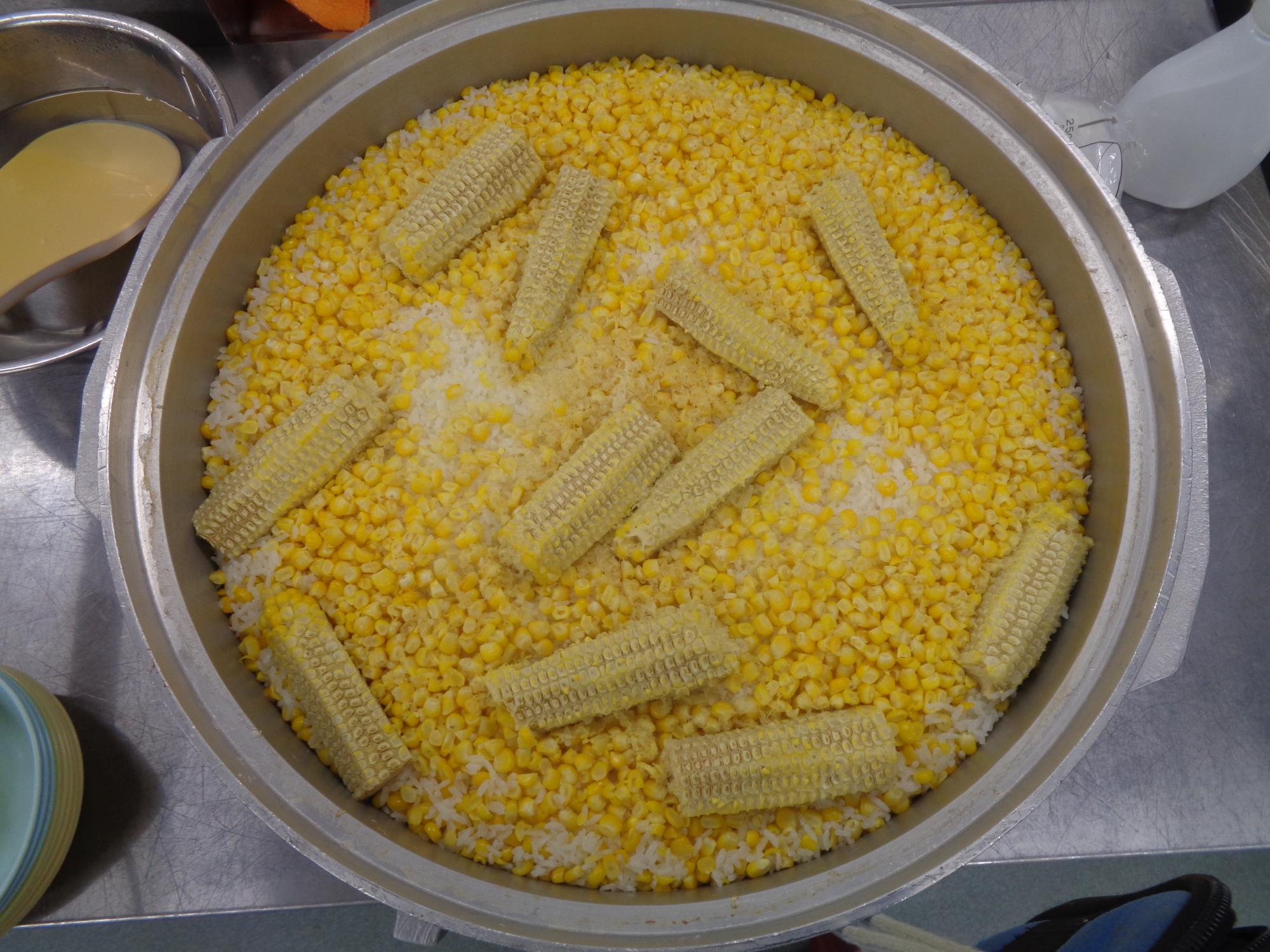 ご飯を炊くときに、とうもろこしの芯も一緒に入れて炊くと、より一層とうもろこしの風味が出ておいしく炊き上がります。
