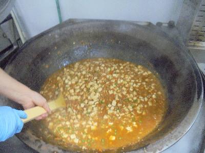 中央保育所では、こんな大きな回転釜で220食を調理しています。