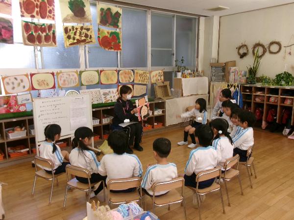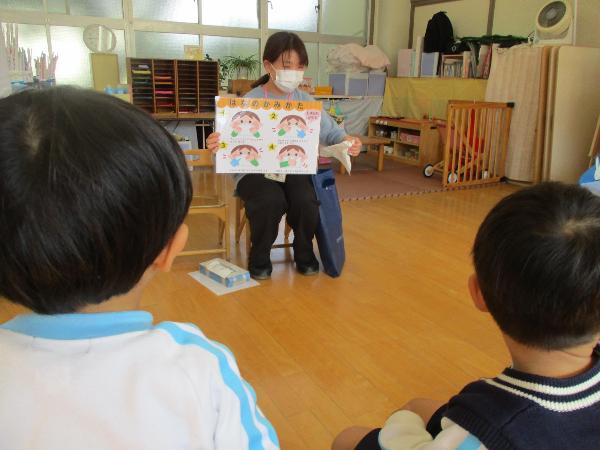 4,5歳児は「よく噛んで食べる」ことについて話をしました。