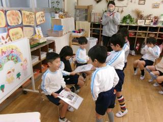 4歳児クラスと5歳児クラスにいる12月生まれの友達をお祝いしました。クラスでは、友達からプレゼントをもらったり、保護者の方から今がんばっていることや名前の由来などを話してもらったりしました。