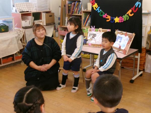 1月の誕生会を行いました。1月生まれの友達をクラスの友達とお祝いしました。