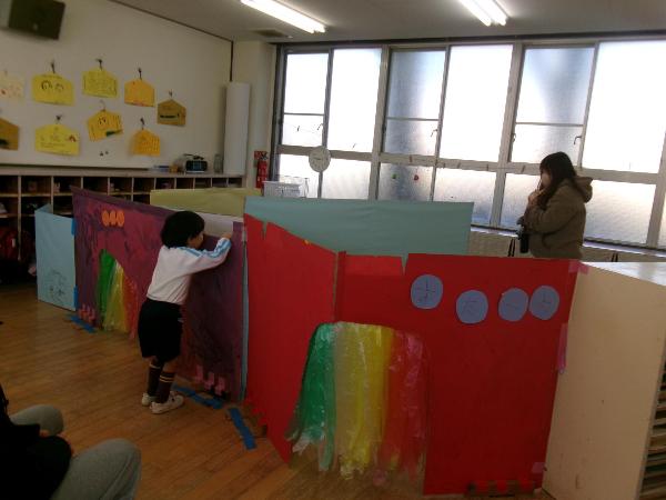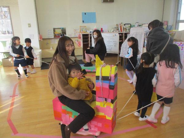 遊んだ後に、子供たちは「ママと遊んで嬉しかった!」「メリーゴーランドに乗ってくれた!」など言って、とても喜んでいました。保護者の方たちからも「どのコーナーも、子供たちが頑張って作っていてびっくりしました!」「楽しかったので、もっと遊びたかったです!」などと感想をもらい、子供たちはとても満足そうな表情をしていました。みんなでたくさん頑張った分、達成感を感じ、自信にもつながったのではないかと思います。保護者の皆様、ありがとうございました。