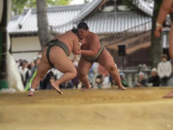 おすもうさんの稽古を見学に猪名野神社に行きました。