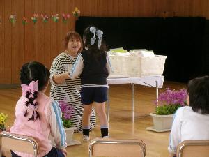 保育修了証書授与式を行いました。暖かく春らしい日、朝からうれしそうな笑顔できりん組の子供たちが登園してきました。式では修了証書を両手でしっかりと受け取り、保護者の方に渡していました。最後に『キラキラがいっぱい』を歌い、元気に卒園していきました。最後のお見送りではうさぎぐみ、りす組の友達にありおか分園のことをお願いしますといっていました。