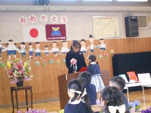 翌日、終業式を行いました。前日の式の様子を見た子供たちはいつもよりもたくましい顔つきで、静かに話を聞いていました。担任の先生からファイルをもらい、1年を振り返りながらそれぞれが自分の成長を感じたことと思います。