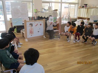 2月のほけんの話はうんちについて話をしました。うんちの形状の違いに注目できるように話をすると、「バナナの形やな」「うさぎのうんちみたい」などの声が聞こえてきました。