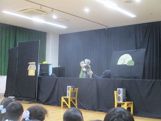 2部は、遊戯室で人形劇サークルの“ポケットさん”に来ていただき、人形劇やバルーンアート、ブラックライトシアターをみせていただきました。子供達は、楽しい時間を過ごしました。